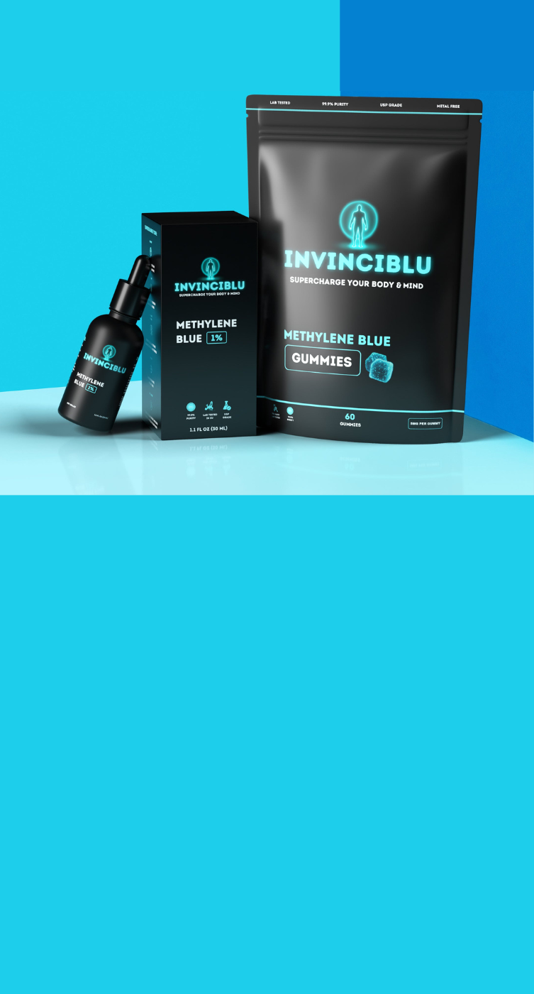 Methylene blue has a long-standing history in medicine for boosting mitochondria, protecting brain cells, and enhancing clarity. At Invinciblu, we use pharmaceutical-grade, third-party tested methylene blue — precisely dosed for daily performance and trusted safety.